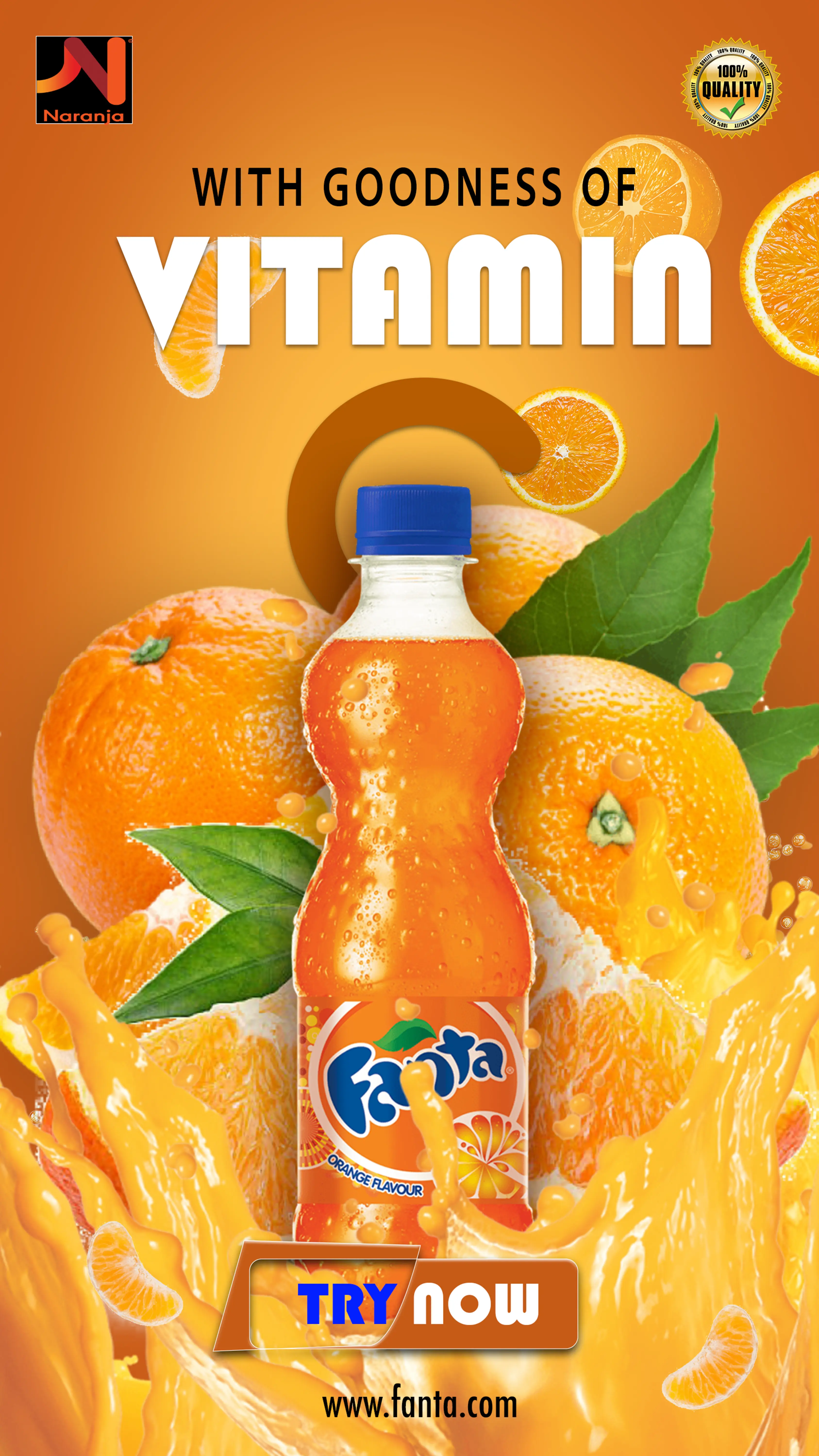 This poster was designed as a product advertisement for an orange flavored beverage. The composition highlights freshness using vibrant oranges, splash effects, and warm color tones. The goal was to create an energetic and refreshing visual that emphasizes the drink’s vitamin content and flavor.